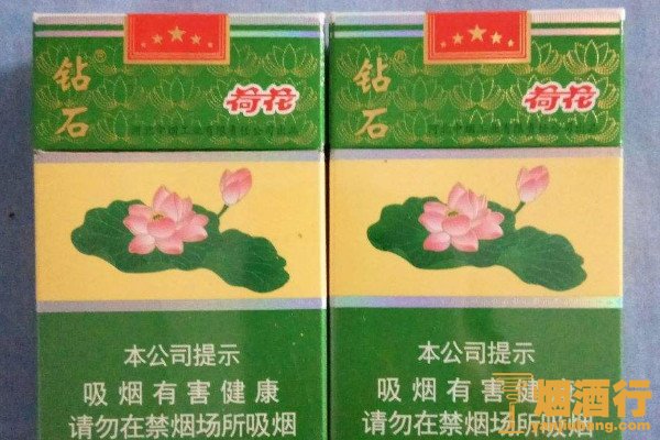 钻石(荷花)的包装以绿色为主,正面中间的黄色区域印有荷花图案,其口感润滑,味道香醇,烟气细腻,回味干净,整体感觉非常好,在市场上有着不错的销量。