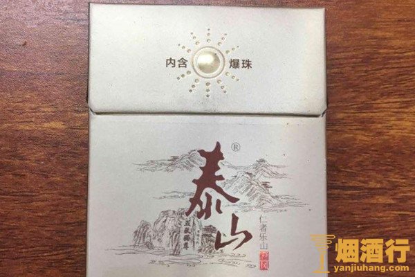 泰山(新品)的包装颜色较淡,正面印有风景画图案,其口感醇厚,烟气饱满,给人的满足感较强,是一款性价比很高的香烟,有着很好的销量。