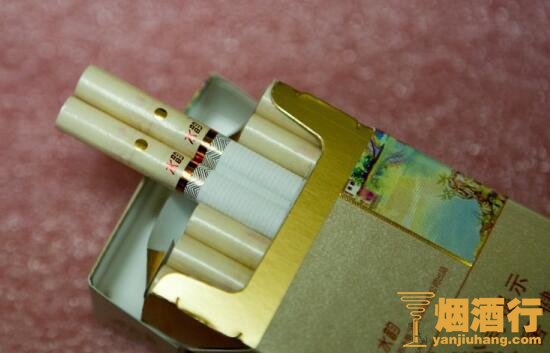 包装:此烟包装简约中加入了富有生机的山水画,将时尚与自然紧密的融入其中,色采搭配上显得更有青春活力,更适合年轻一代烟客的审美观。以米黄色为主色,配以金线镶边,给人感觉档不住的大气外流。彩色的山水画点缀得十分到位,有一种亲切舒适之感。