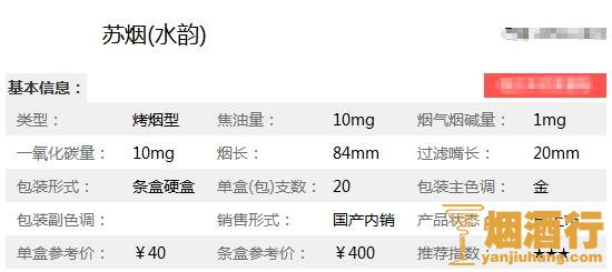 水韵苏烟多少钱一盒 苏烟价格表图