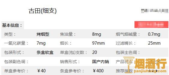 在了解了2018古田(1929细支)烟多少钱一包之后,为了大家能更详见的了解此烟,小编特意将古田1929细支香烟的核心参数进行了整理,以便于对它进行更深入的了解。