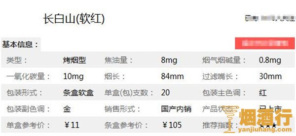 在了解了长白山(软红)香烟多少钱一包之后,为了大家能更详见的了解此烟,小编特意将长白山(软红)香烟的核心参数进行了整理,以便于对它进行更深入的了解。