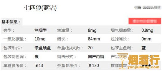 在了解了2018七匹狼(蓝钻)多少钱一包之后,为了大家能更详见的了解此烟,小编特意将七匹狼(蓝钻)香烟的核心参数进行了整理,以便于对它进行更深入的了解。