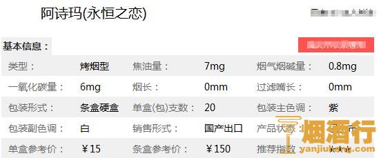 在了解了2018孔雀阿诗玛香烟多少钱一包之后,为了大家能更详见的了解此烟,小编特意将阿诗玛(永恒之恋)香烟的核心参数进行了整理,以便于对它进行更深入的了解。