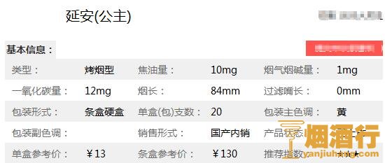 2018延安黄公主香烟多少钱一盒