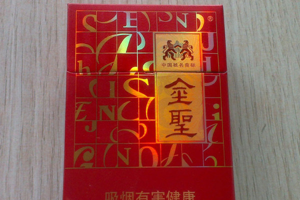 金圣(软红)使用红色软盒包装,正面印有金色的字母花纹,风格喜庆,高端大气,且香烟性价比较高,烟气醇厚飘逸,刺激感较小,杂气较少。