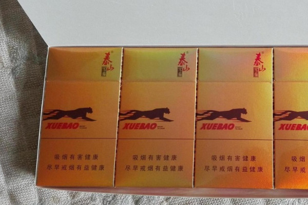 泰山(雪豹双十支)采用金色烟盒包装,侧边印有豹纹和雪豹图案,整体风格设计时尚且新颖,而且香烟属于雪茄型,口感层次丰富。
