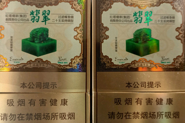 玉溪(双中支翡翠)是全球首款微生物调香生态卷烟,其包装以绿色和金色为配色,并在烟盒上设计有翡翠的图案和文字,整体风格典雅大方,而且香烟的口感舒适清香。