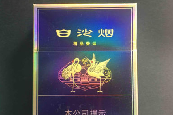 白沙(精品二代)的包装以深蓝色为主,带有渐变色的效果,正面有圆口细小的花纹和两只丹顶鹤图案,上面有白沙烟的字样,有很强的刺激感,味道醇和,但杂气较大,有点辣,还带有一点苦味。