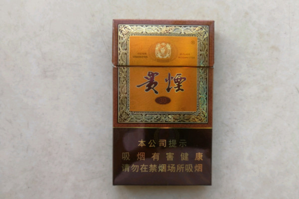 贵烟(国酒香30)的包装以棕色为主,正面有金色的花纹边框,中间有贵烟30的字样和一个圆形花纹图样,口感顺滑,烟气香醇丰富,捏破爆珠后,带有很浓的酒香味。