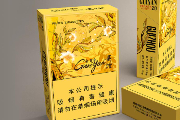贵烟(金百合)的包装以黄色为主,正面印有金色百合图案,右下角有黑色的贵烟字样,外观很漂亮,口感柔和,味道清淡,带有淡淡的花香味,后劲也比较足。