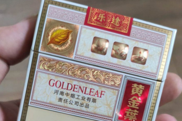 黄金叶(硬乐途)的包装以米黄色为主,样式和乐途相似,只是左上角的烟叶周围有深色圆圈,是一款中支长烟嘴的香烟,其口感平滑,烟气饱满厚重。