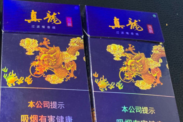 真龙(软海韵)的包装以蓝色为主,正面有许多细小的纹样,左侧有真龙海韵字样,在右侧为金龙图案,其焦油含量较低,有浓郁的植物香气,广受消费者好评。