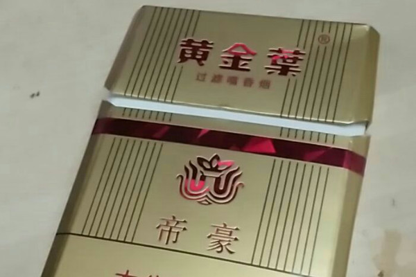 黄金叶(帝豪)的包装以金色为主,正面有许多红色的条纹图案,中间印有帝豪的字样,上半部分为黄金叶的标识,是河南的特产香烟,有很浓郁的烟草本香,但味道有点辣,比较适合老烟民。