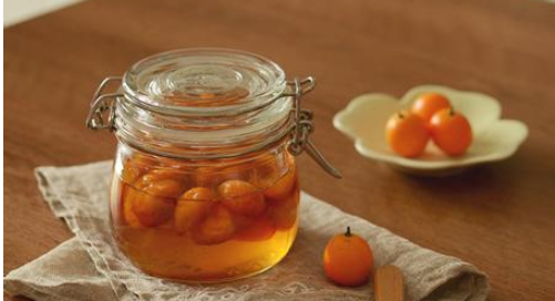 1、蜂蜜150g,金桔800g,白酒2000g,蜂蜜与白酒混合,取金桔去皮分辨浸泡入酒内30天后,取酒饮服。