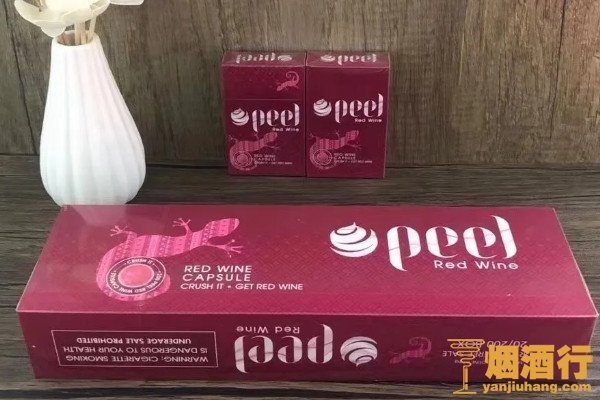 peel(红酒爆珠)外包装颜色为酒红色,打开烟包,让人心旷神怡的酒香味道透发而出,烟支入口淡雅清新,不呛口、不辣喉,将红酒味道的爆珠捏碎,酒香在口腔中爆开,深吸一口,令人陶醉。