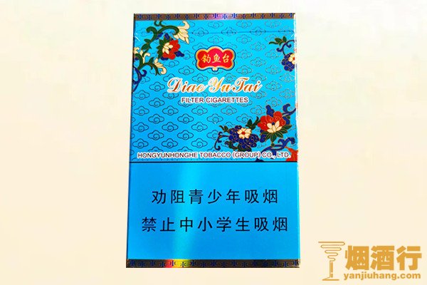 目前市面上的钓鱼台(84mm细支)售价大约在50元一包左右,一条10包价格500元,不同地区的价格有轻微浮动,但是差距不大,而钓鱼台(硬景泰蓝94mm)价格高于84,目前市面上售价98元一包,一条的价格为980元。