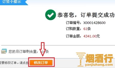 5、确认香烟的数量和品牌,确认余额是否充足,点击提交订单。