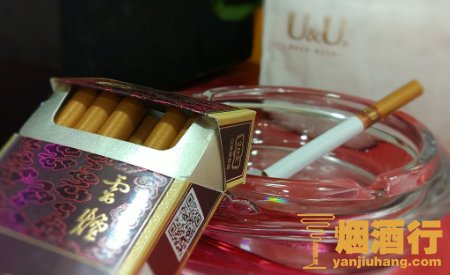 这款烟的价格在23元钱左右。在外观上这款烟比较不错,是以红紫色为主色调,看起来比较高贵。烟盒的正面上还有些祥云的图案,颜值上这款烟还是非常高的,烟支比较细长,烟支的过滤嘴略长,上面还有云烟的拼音字母,夹在手中很有气质。